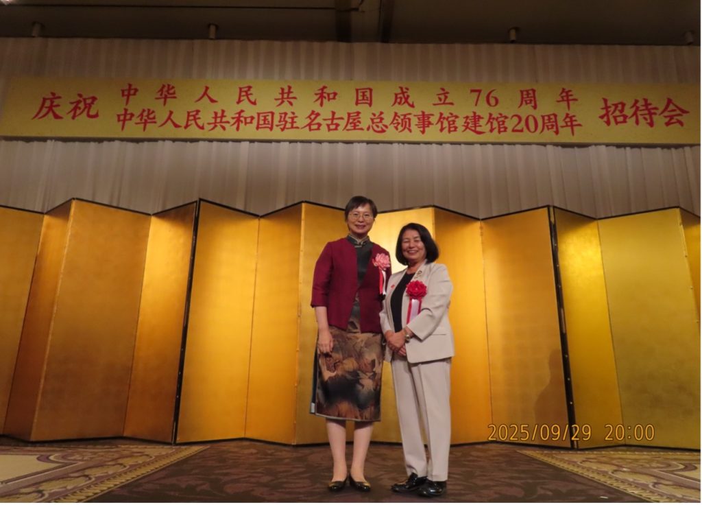 2025年9月29日(月)に、中華人民共和国成立76周年・駐名古屋総領事館創設20周年祝賀会に、朴 恵淑三重県日中友好協会の副会長で、「三重GPN」代表幹事(会長)・三重大学地域イノベーション学研究科客員教授、小宮一郎理事長、三重県日中友好協会の関係者が参加し、中華人民共和国駐名古屋総領事館の楊 嫻総領事をはじめ、関係者との緊密な友好関係を深めました。