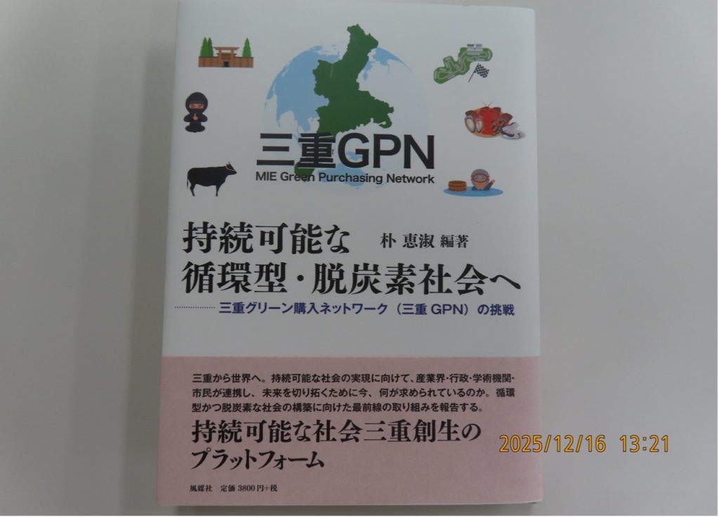 2025年12月31日に、『持続可能な循環型・脱炭素社会へ〜三重グリーン購入ネットワーク(三重GPN)の挑戦;朴 恵淑編著;風媒社;306ページ;ISBN978-4-8331-5477-2 C0036』の書籍を出版しました。
